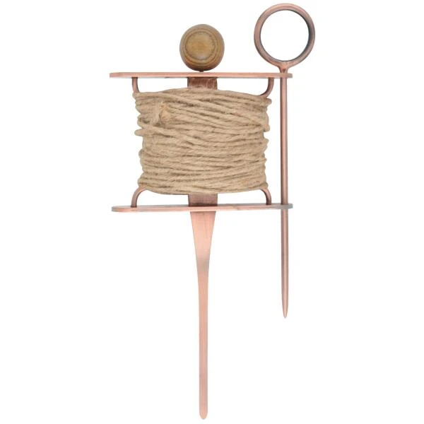 Zo werk je steeds in een rechte lijn, ook bijvoorbeeld bij de aanleg van graszoden. Bestaat uit 25 meter jute tuintouw op een spoel in verkoperd koolstofstaal met platte steker zodat die niet steeds doordraait bij het aanspannen van het touw met de verkoperde grondpin.