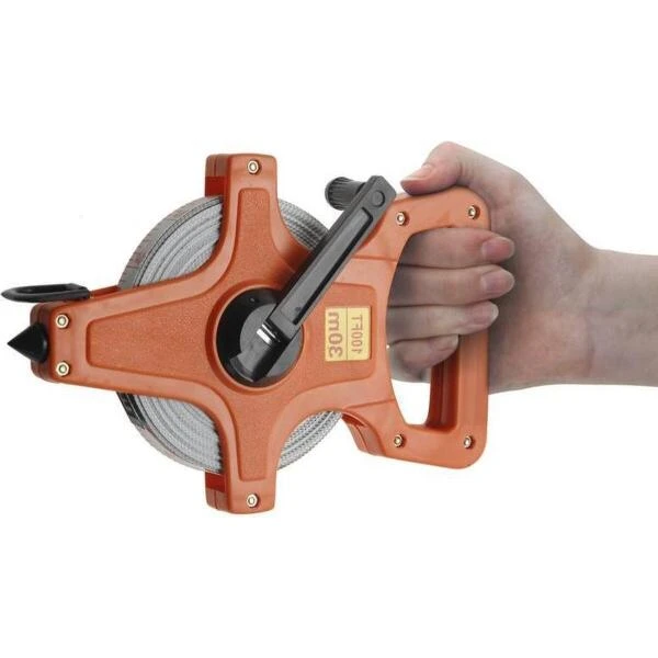 Met deze rolmaat van 30 m meet je moeiteloos grotere lengtes in huis en tuin. Hij is voorzien van een handvat, een inklapbare oprolhendel en een grondpen.