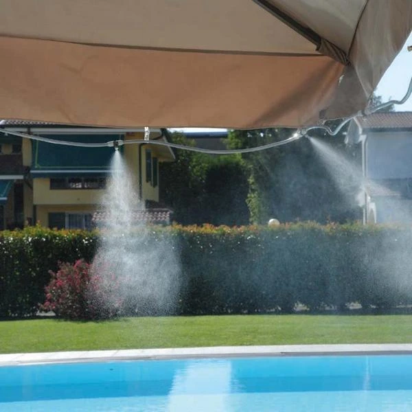 Een systeem dat voor afkoeling zorgt tijdens warme zomerdagen. Hang het vernevelingssysteem gewoon aan jouw parasol en ervaar een aangename verfrissende waternevel.