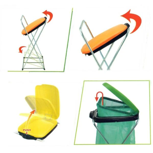 Deze vuilniszakhouder maakt het vullen van vuilniszakken gemakkelijker. Je plaatst een vuilniszak in de houder en een deksel sluit de zak af. Proper en handig want deze vuilniszakhouder is vlot te verzetten. Ideaal voor garage, werkruimtes en vuilzakken van de gemeente voor restafval of voor plastic, blikjes, papier,…